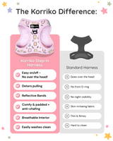 Getting the right fit makes all the difference for safe, comfortable walks. Use our simple sizing guide to measure your pup’s neck and chest, then match their measurements to our chart for the best fit. Because every brand sizes differently, we recommend double-checking your pup’s measurements before ordering to ensure their new Korriko harness feels just right.